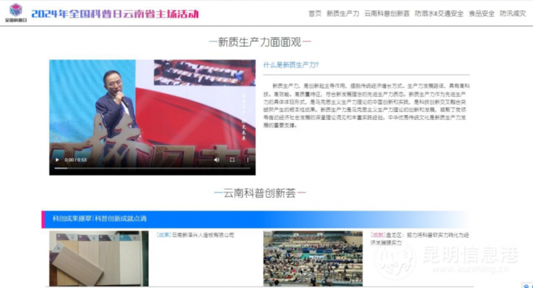 本次活动还开设了线上活动专区,设有“新质生产力面面观”“云南科普创新荟”“科学知识问答学习”“防溺水·交通安全”“食品安全”“防汛减灾”6个特色科普专栏,公众可通过“云南省科协”“盘龙i科普”微信公众号参与线上活动。