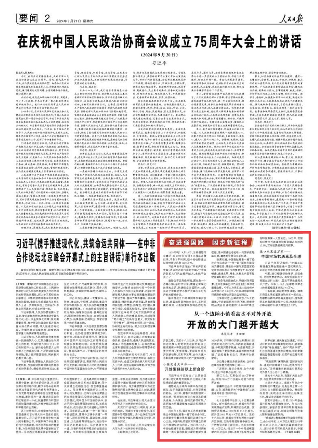 9月21日,人民日报要闻版刊发题为《从一个边陲小镇看高水平对外开放 开放的大门越开越大(奋进强国路 阔步新征程)》的文章,聚焦原是边陲小镇的磨憨乘着全面深化改革的东风,快速蝶变为国际大口岸,见证了中国坚定不移扩大高水平对外开放的铿锵步伐。详情如下: