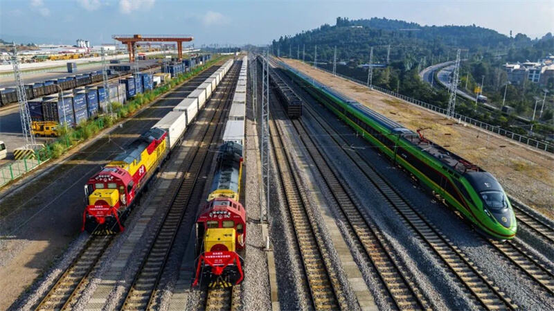 一条铁路,架起物流快通道。满载东南亚水果的国际货物列车一路向北,在磨憨铁路口岸经海关查验后,直抵昆明王家营西集装箱中心站,物流时间由公路运输的10多天缩短至3天内。
