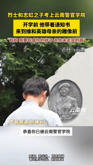 8月,烈士和志虹之子考上云南警官学院,开学前,郑啸云拿着云南警官学院的录取通知书,将这个好消息告诉了母亲,立志要走母亲未走完的路。