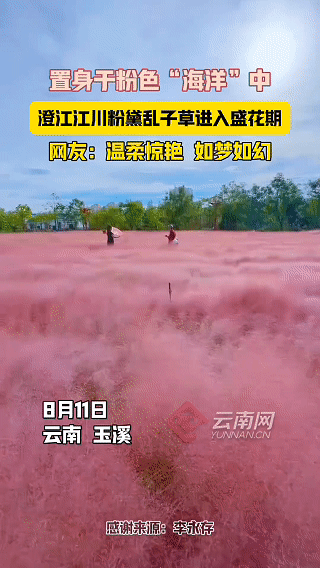 8月,秋日限定浪漫,云南澄江粉黛乱子草进入盛花期,仿佛置身于粉色“海洋”中,如梦似幻。