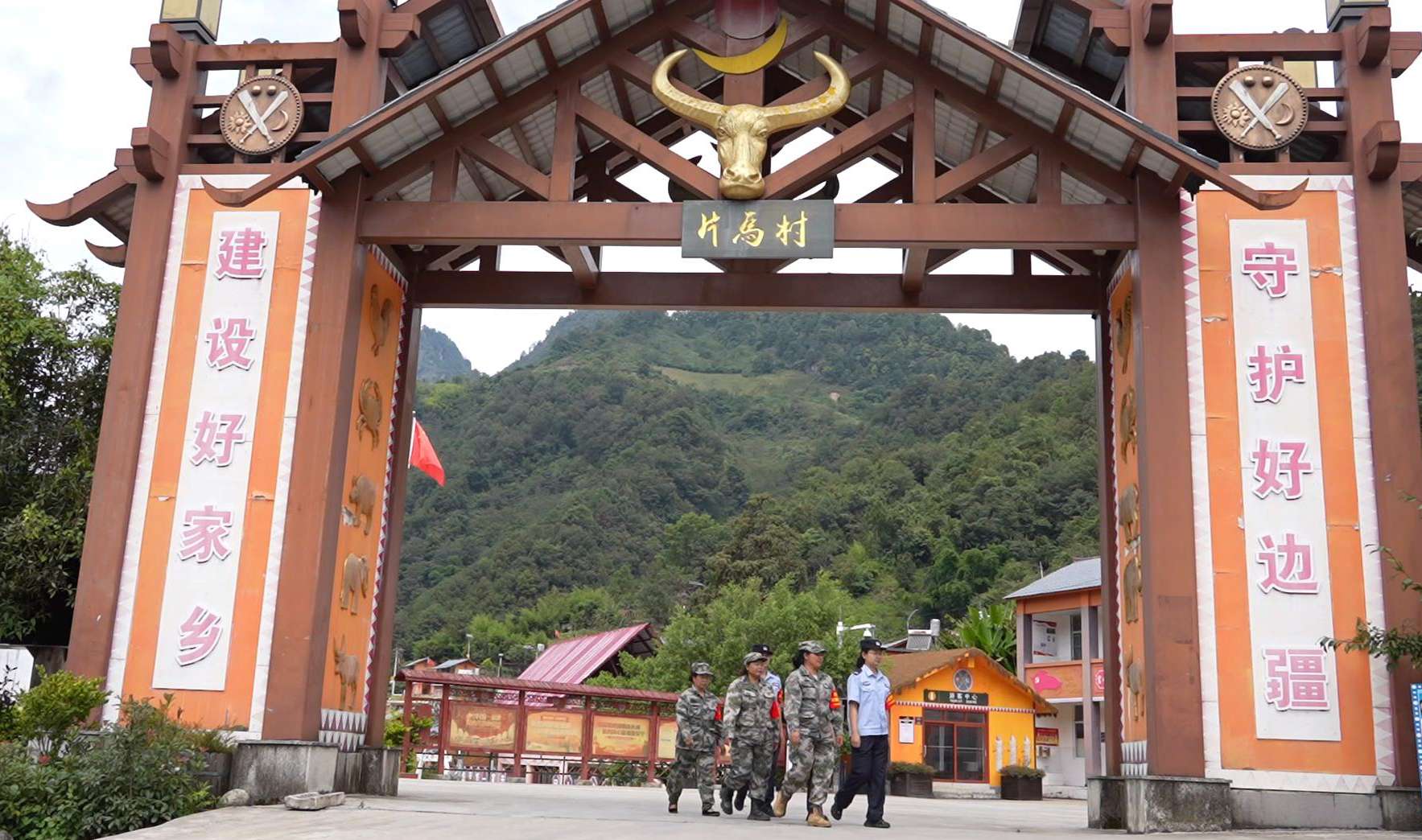 泸水市片马镇是怒江国门第一镇,国境线长64.44公里。中缅两国山河相连,村庄相依,互市通婚,来往密切。近年来,有一支戴着“然门然”红色袖章的护卫队一直活跃在片马边境线上,成为了边境线上的铿锵玫瑰。