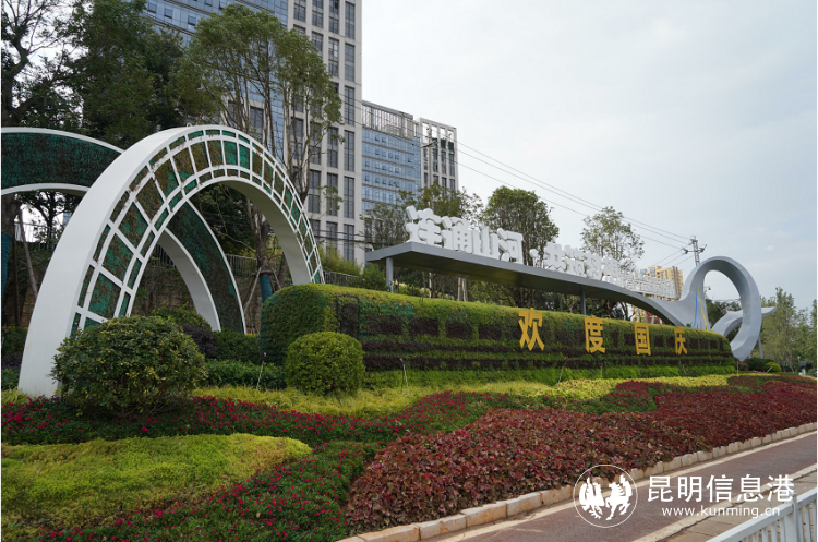 经开区在春漫大道、石龙路沿线进行时令花卉更换,在道路重要节点打造花境并设置立体花坛;在纳源路以滇越铁路连通两国友谊为主题,设置高铁造型的立体花坛;在观山公园采用时令花卉更换,彩旗设置等方式营造欢乐祥和的节日氛围。