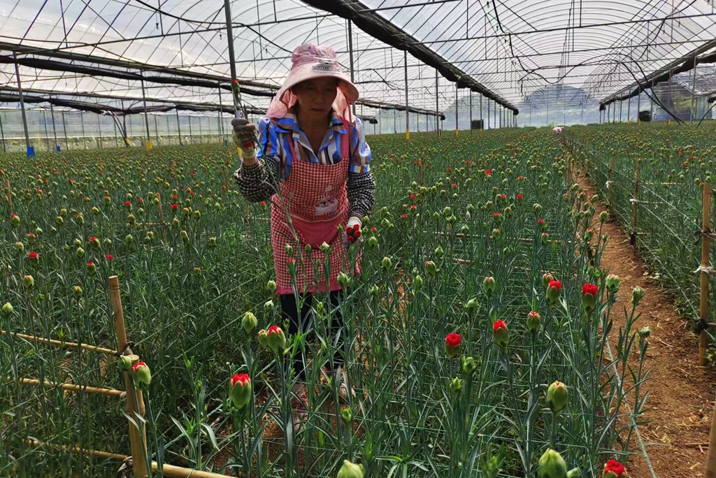 曲靖市党史研究室驻村工作队队员李振东:通过产业发展,我们单位从2018年到现在,在支持方面每年从我们单位出来的都是20多万的支持力度,搞好各种产业发展。领导对这块工作也很重视,每年都来30次关心走访,对产业技术方面都积极派人来辅助,尤其现在这个产业给我们看到了新民的希望,新民的前景是很好的,我相信康乃馨种植也会随着我们乡村振兴会做得更好。