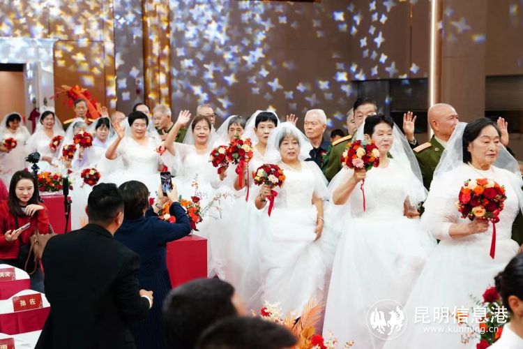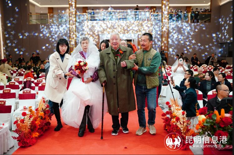 在庄严喜庆的礼堂里,军休干部金婚夫妇身着漂亮的婚纱,手挽着手走在红毯上,大屏上滚动播放着他们那个年代结婚时的照片,追忆那段峥嵘岁月和共克时艰的点点滴滴。这些特殊的夫妻,长期聚少离多,却始终坚守着对国家的忠诚和对彼此的承诺。