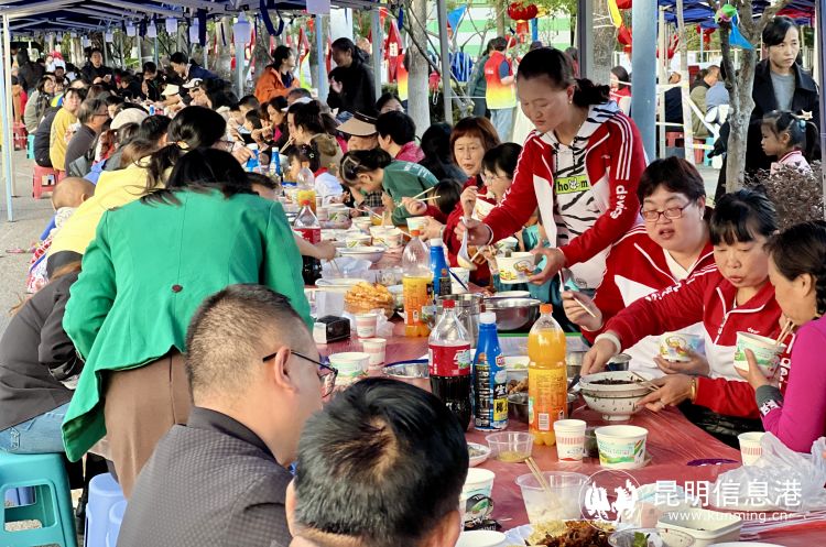 现场设置了免费体检区,65岁及以上的老人可以凭借身份证免费参与体检。此外,现场还有昆明市公安局经开分局工作人员为居民宣讲未成年人保护、反电信诈骗等内容。下午举行的百家宴也尤为热闹,一盘盘热腾腾的“私房菜”很快就把桌子摆得满满当当,活动洋溢着烟火气,承载着邻里情,流淌出浓浓的幸福味道。