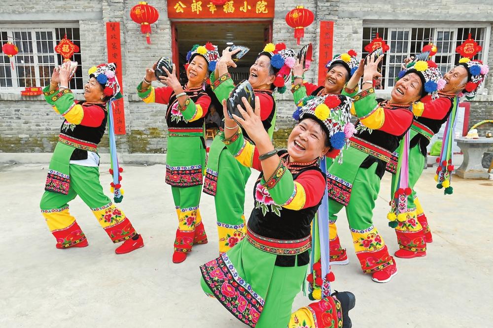 10月10日,南涧彝族自治县公郎镇开展重阳节系列活动,老人们在欢乐的气氛中挂灯笼、贴对联、排演节目,同吃“敬老宴”共庆重阳节。本报通讯员 适志宏 刘永馀 摄