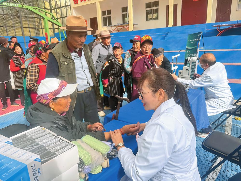 10月11日,迪庆藏族自治州在香格里拉市尼西乡汤满村汤堆上小组举行“深入推进移风易俗 弘扬孝老传统美德”的文明实践活动,与辖区老人共庆佳节。主题宣讲、健康检查、节目表演等轮番登台,活动现场充满欢声笑语,掌声此起彼伏,氛围热烈。 本报记者 张帆 摄