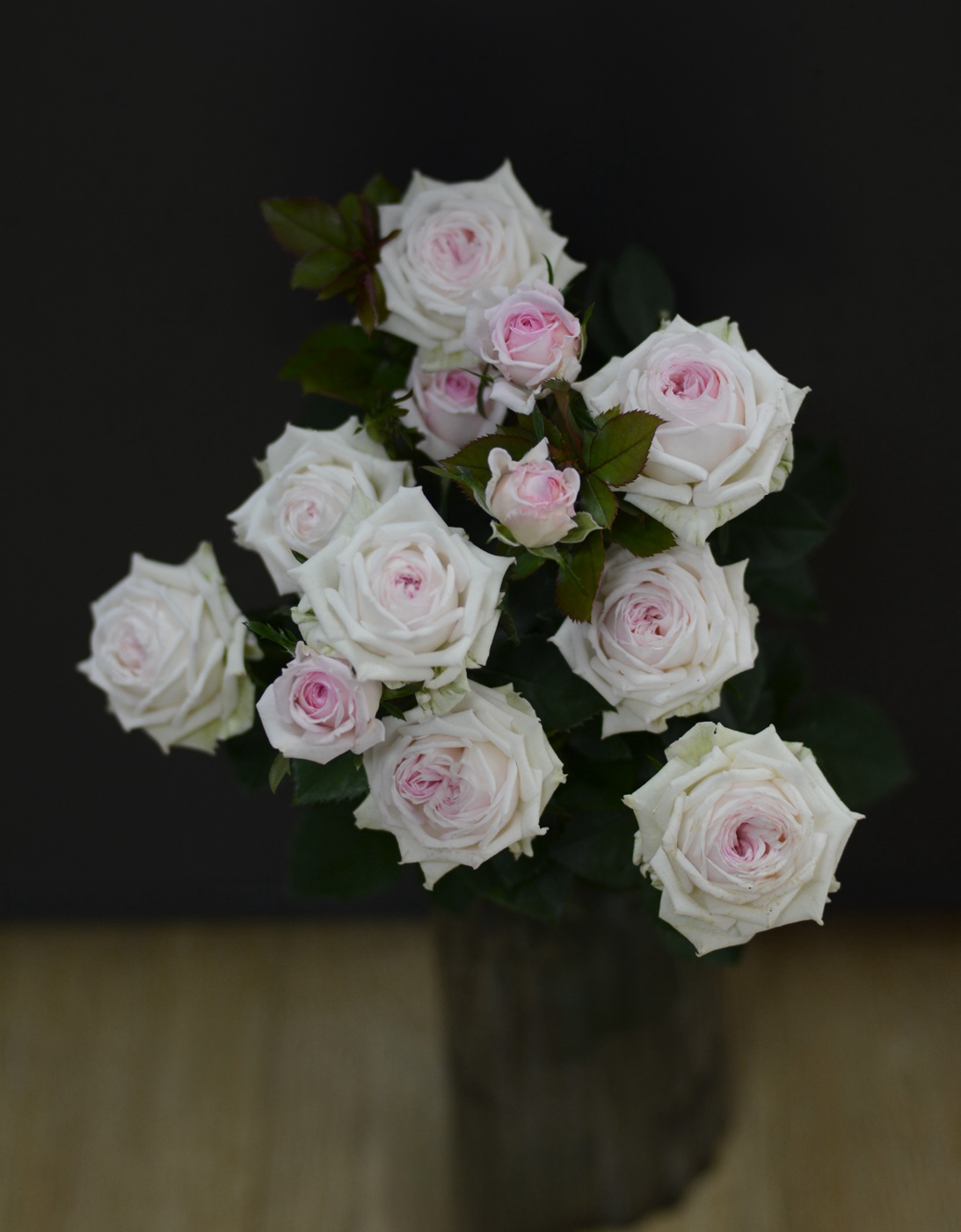 茎杆:所有等级都要求茎基部 10cm 内的叶片和皮刺应去除;其中A、B级均要求强健、挺直,能充分支撑花头,无病虫害;C级茎杆允许较瘦弱;D级的茎秆则增加了弯曲和有未去除干净的侧枝;同时明确茎基部 1 0cm 叶片、皮刺未去除的一律划分 E 级。此外,严重缺陷数量大于 25 %不可交易。
