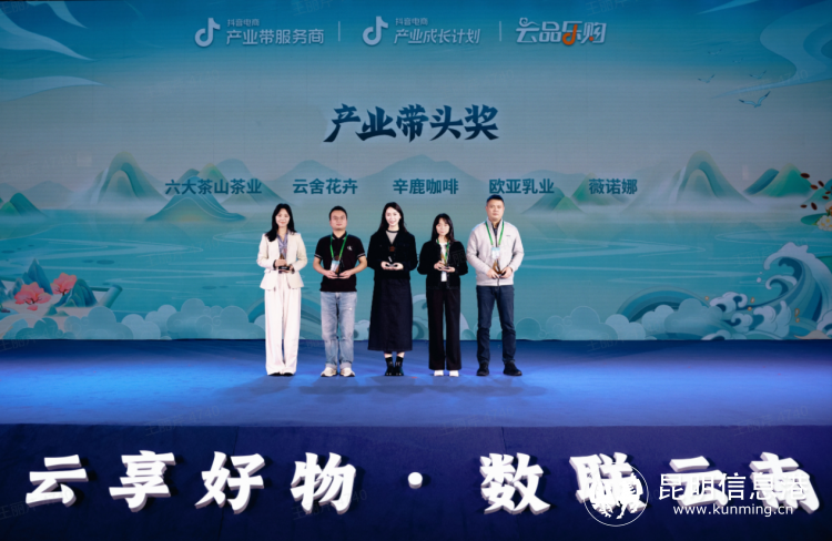 2024年10月28日,来自云南的六大茶山、云舍花卉、辛鹿咖啡、欧亚乳业、薇诺娜等5家本土龙头企业获评本次峰会产业带头奖,云南产业带抖音电商峰会组委会为其颁奖,表彰他们在深耕产业带多年,借助云品乐购项目资源成功实现电商转型,探索出产业发展的新模式,带动当地经济增长。