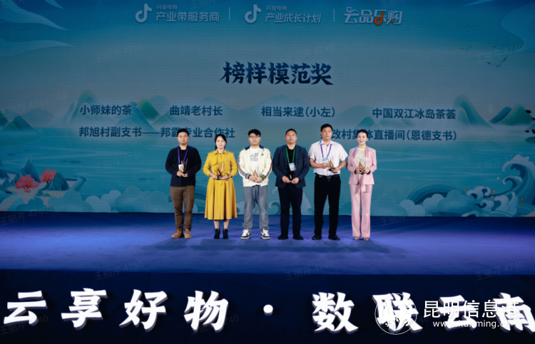 2024年10月28日盛会现场,一直活跃在田间地头的小师妹的茶、曲靖老村长、相当来逮(小左)、中国双江冰岛茶荟、邦旭村副支书——邦霸专业合作社、邦改村集体直播间(恩德书记)等产业带头人,他们用直播带动一方产业增长,集体增收,因此获评此次峰会的榜样模范奖。