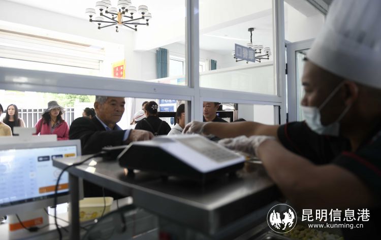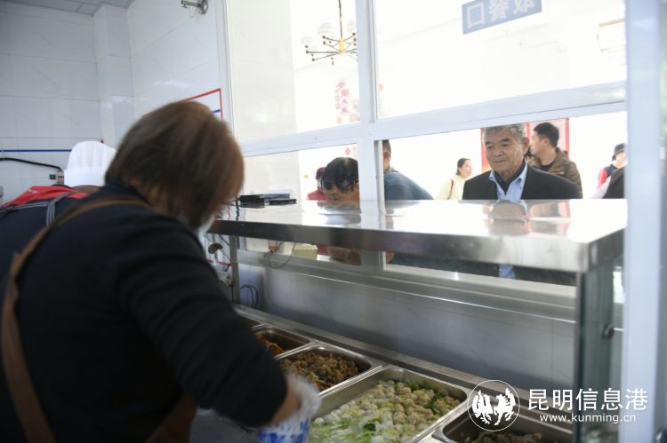 当天中午,金方社区老年幸福食堂提供的餐食看上去营养美味,粉蒸肉、酸菜炒肉末、小炒豆腐、凉拌豌豆粉、白菜炖豆腐肉圆子、菌菇炒猪肉、蒸南瓜……每一道菜都色香味俱全,还特意蒸了玉米饭。安宁市的老年人,只要年满60岁,即可通过刷脸或者刷卡的方式,方便、省钱地在老年食堂享用中、晚两餐(含周六、周日)。在金方社区老年幸福食堂,60-79岁的老人正餐只需花5元钱,就能吃到三荤三素一汤的老年餐;80-89岁的老人一餐只需4元;而90岁以上的老人则可以免费用餐。这些餐食不仅价格实惠,且菜品丰富,以软糯为主,照顾到了老年人的饮食习惯。
