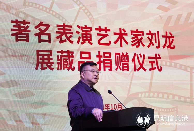 云南省文联党组书记、主席孙炯在致辞中说,老一辈著名表演艺术家刘龙同志在演艺生涯中,塑造了许多深入人心的荧幕形象,是受人尊敬和敬仰的杰出表演艺术家,为繁荣云南文学艺术事业做出了积极的贡献。此次刘龙同志的亲属,将展现他艺术人生的一批文献和资料捐赠给云南文学艺术馆,既体现了刘龙同志对第二故乡云南的深情厚谊,也是对云南文学艺术馆的一份沉甸甸的信任。作为集收藏保护、展览展示、社会教育、对外交流、学术研究、游览参观、文化休闲功能为一体的云南文学艺术馆,要积极整理好、保存好、挖掘好展藏品,并充分利用好展藏品,彰显好老一辈优秀艺术家的精彩艺术人生,以实现应有的社会价值和学术价值。孙炯说,刘龙同志在云南工作生活的30年,彩云之南这块丰饶的土地滋养了他,他又以自己卓越的艺术成就回馈这块土地。孙炯希望我省广大文艺工作者努力践行习近平文化思想,以刘龙同志为代表的老一辈艺术家为榜样,走进生活、扎根人民,勤奋创作出更多更好的文艺精品;也期盼我们的老一辈文学艺术家,重视自己艺术人生的回顾和总结,把更多的展现云南文艺发展史的展藏品放到云南文学艺术馆,让云南文学艺术馆真正成为一个展现云南文学艺术史的大型平台,回顾历史、致敬先贤,启迪后人、面向未来。