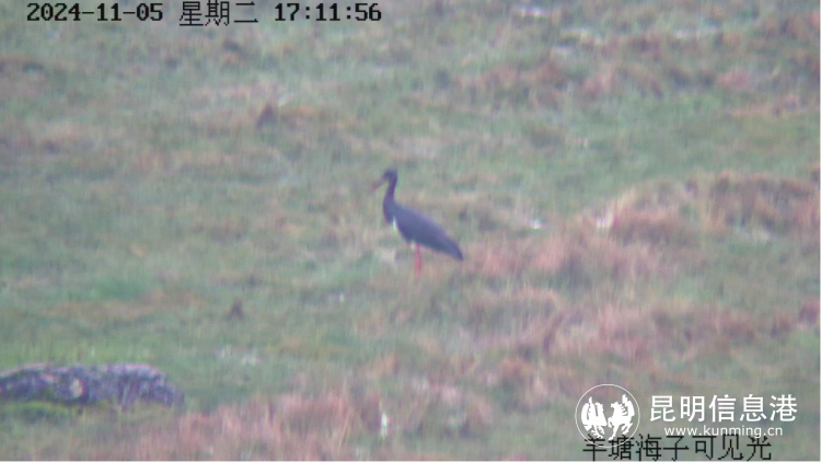 6686体育讯 记者任丹 通讯员寸兴刚 一年一度的候鸟迁徙之旅陆续开启,寻甸黑颈鹤省级自然保护区是滇东北重要的鸟类迁徙通道。2024年11月5日17时11分,保护区巡护人员在羊塘海子附近巡护过程中发现,一只上体呈羽黑色的鸟类在湿地里悠然散步,立即联系横河管护站监控室,利用视频监控拉近抓拍,经管护局专业技术人员辨别,确认为国家一级重点保护野生动物黑鹳。