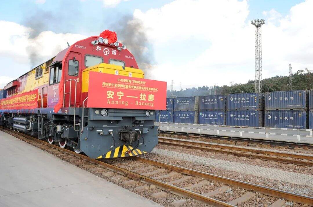 11月19日,中老泰铁路“昆明陆港号”昆明安宁至泰国拉廊多式联运货运列车首发仪式举行。11月20日,满载泰国特色水果的货运列车到达安宁,首次实现昆明陆港经中老泰铁路公路多式联运,抵达印度洋沿岸港口拉廊,实现陆港城市与海港城市的运营联通,中老泰铁路黄金线路效应持续放大。