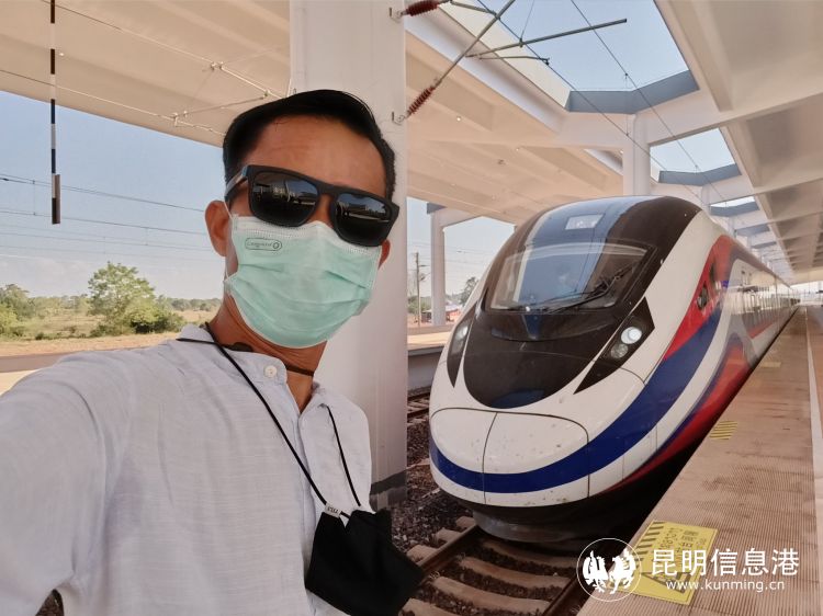 亘弯贾·玛尼贾西与中老铁路“澜沧号”合影。供图