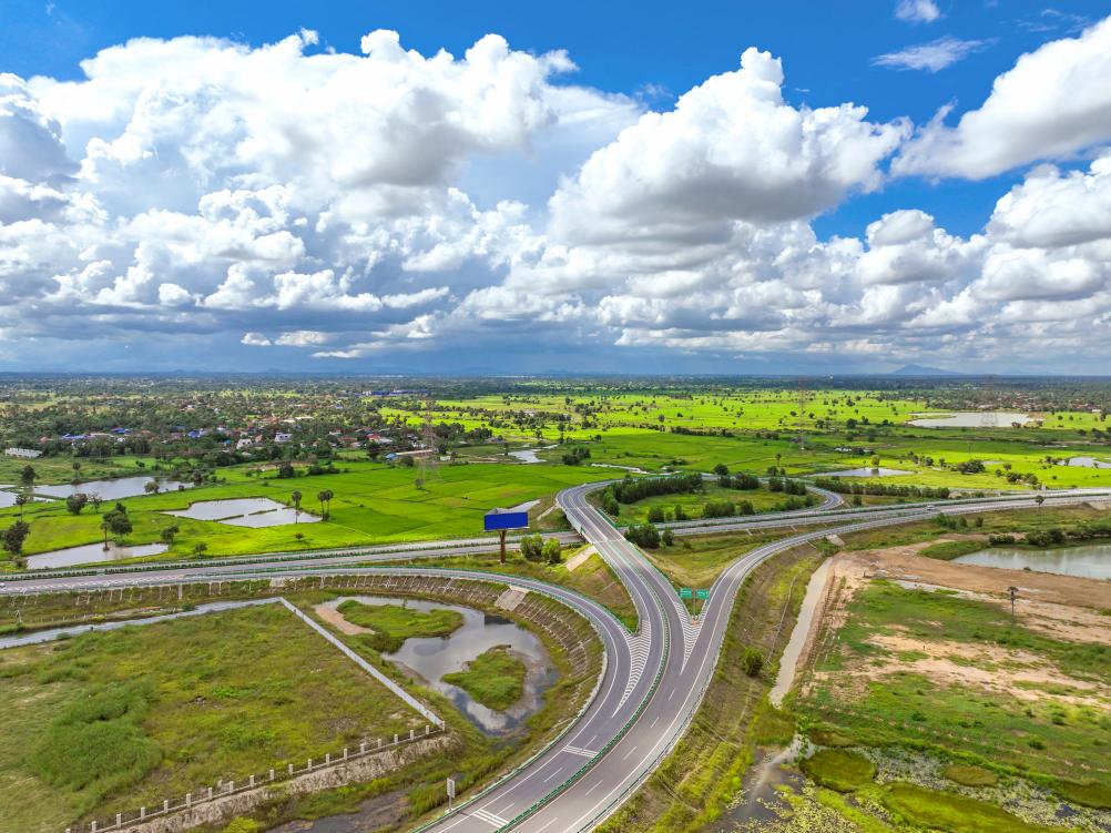 这是9月25日在柬埔寨磅士卑省拍摄的金港高速公路(无人机照片)。新华社发(柬埔寨金港高速公路有限公司供图)