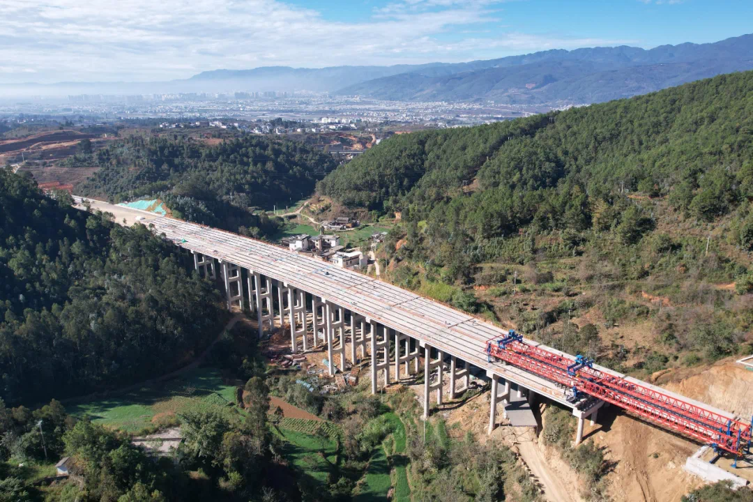 11月26日,楚雄市东南绕城高速田房头大桥T梁架设完成。