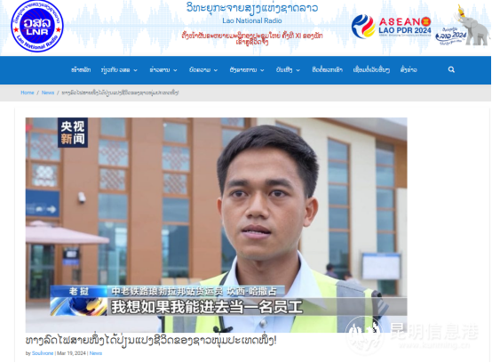 3月19日,《老挝国家广播电台》发表题为《一条铁路,改写老挝青年命运!》的报道,生动讲述了中老铁路如何成为老挝青年实现梦想的舞台。报道称,中老铁路的开通为老挝青年打开就业的大门,创造了超过11万个涵盖货运、交通运输、商业、旅游等多个领域的就业岗位,为他们的未来描绘出更加光明灿烂的蓝图。同时,这条铁路也成为中老两国友谊与合作的见证,为两国人民带来实实在在的福祉。