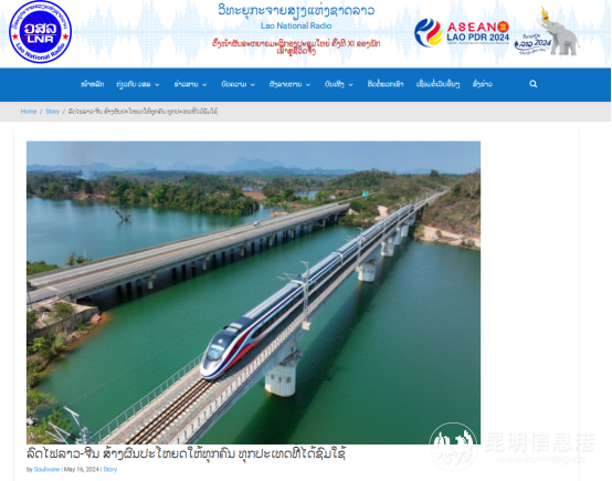 5月16日,《老挝国家广播电台》发表《中老铁路:惠及万民,共筑繁荣》的报道,深入分析中老铁路对沿线国家和人民的深远影响。报道中称,中老铁路的开通不仅极大改善了老挝的基础设施条件,还促进了区域的互联互通与经济发展。同时也为老挝人民带来更多的就业机会和更高的生活水平,为区域经济的共同繁荣奠定了坚实而稳固的基础。