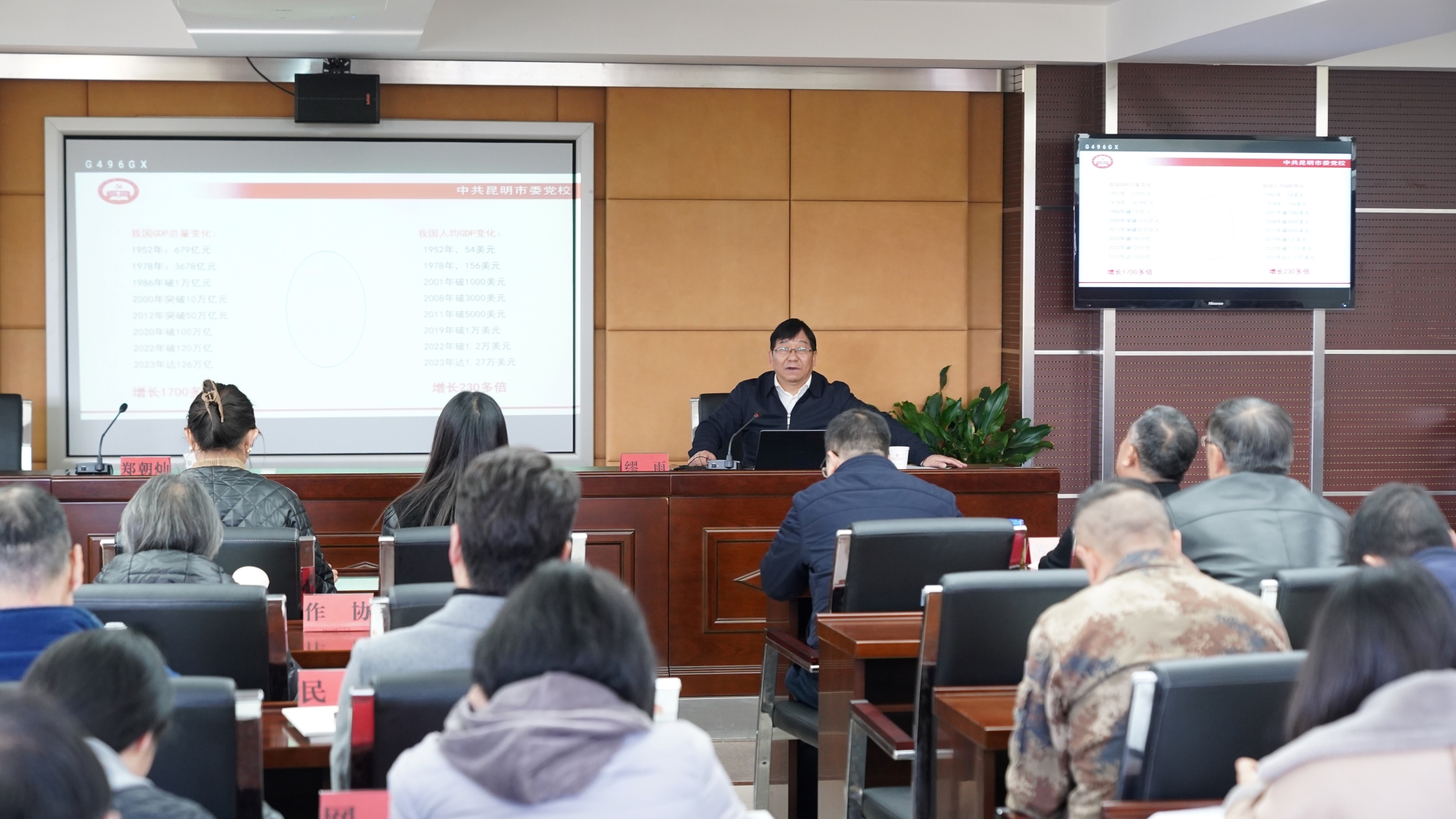 昆明市委党校党史党建教研部主任缪雨教授正在进行专题授课 记者王奕然/摄