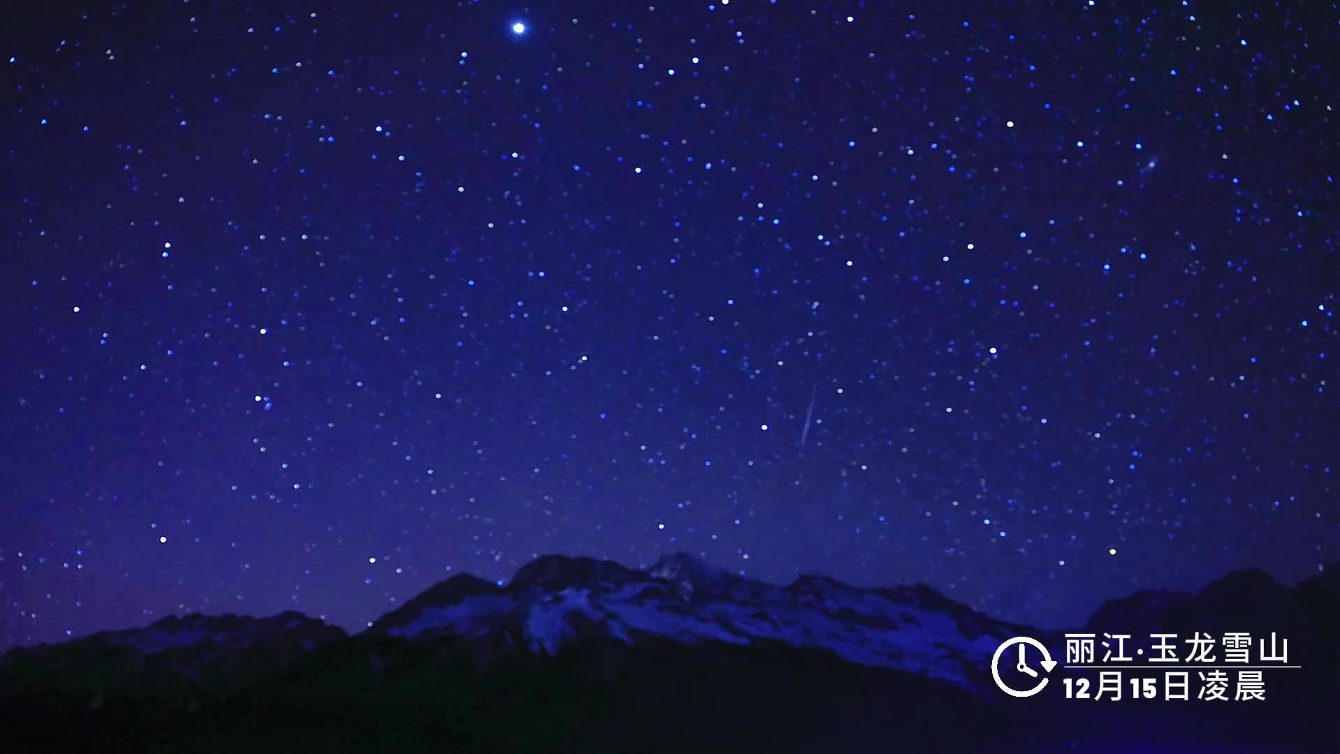 12月14日,流星划过玉龙雪山夜空的瞬间。(丽江融媒 记者李扬 摄)