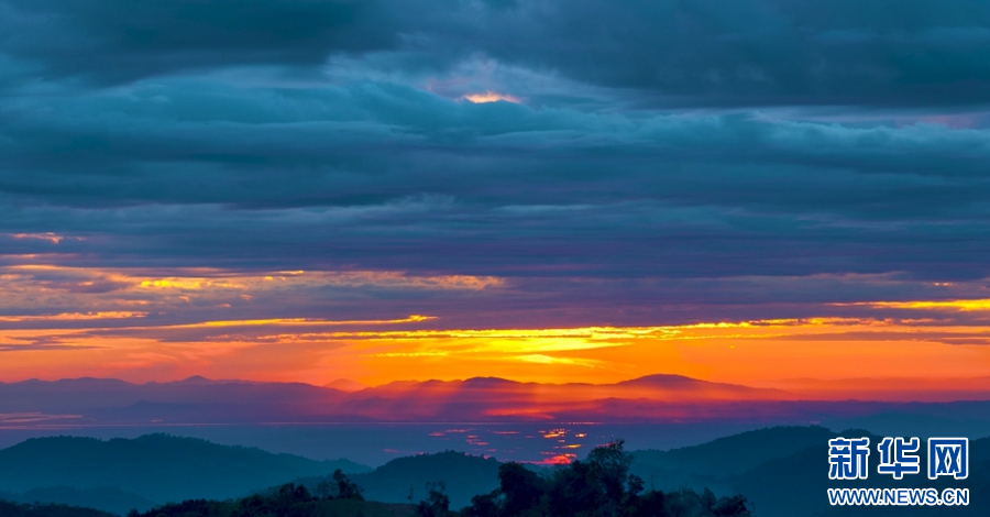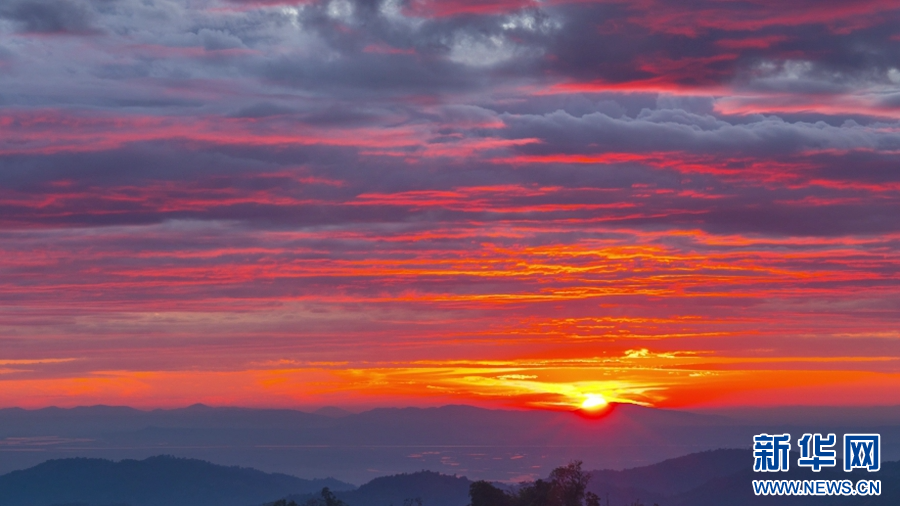 Aerial photography captures a dreamlike sunset in Yingjiang, Yunnan