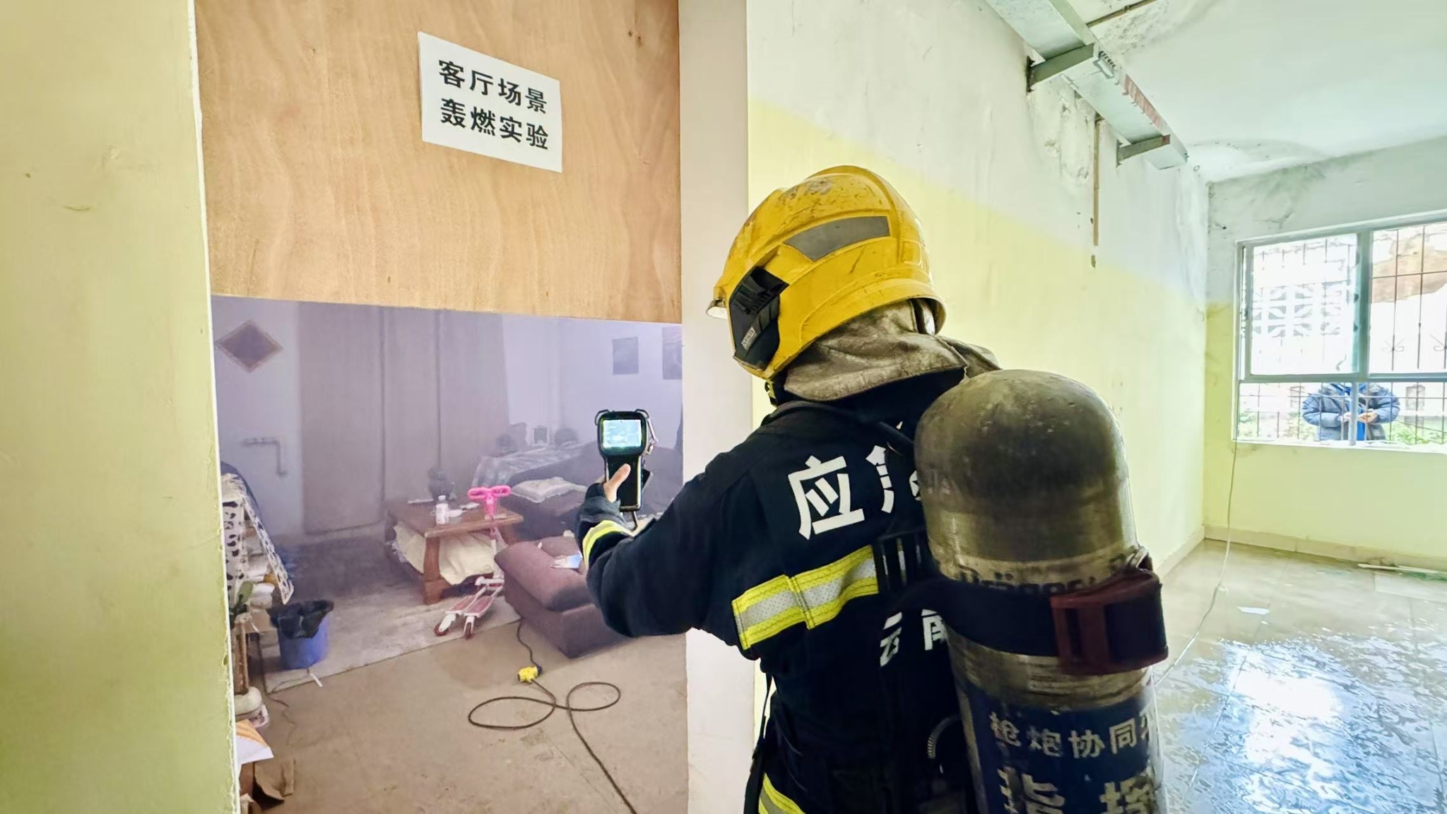 演练结束后,现场还开展了无人机灭火、粉尘爆炸、厨房起火、回燃、轰燃、锂电池起火等科研测试,通过真烟真火试验与火灾模拟软件相结合的方式采集火灾行为数据,可为深入分析火场温度、烟气蔓延、热辐射对周边环境的影响及防火间距的有效性提供支撑,实验结果可为火灾应急预案优化、烟气控制策略、建筑防火间距设计等提供科学依据。