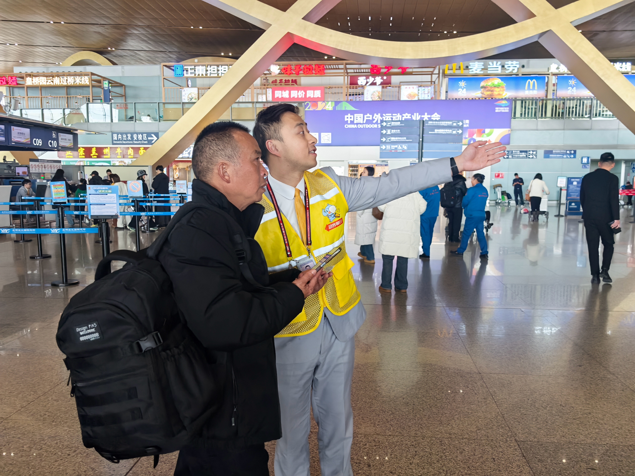 此外,针对春运期间可能出现的航班不正常情况,祥鹏航空已加强应急备份人员力量,并优化了航班不正常后的信息告知、客票退改签等旅客服务流程,提高旅客疏散和转运效率。祥鹏航空还对功能性柜台进行了细分调整,特别关注老年旅客、孕妇、无陪儿童、军人、首次乘机旅客及高端旅客等特殊群体的需求,在减少旅客排队等待时间的同时,为他们提供更加贴心的出行服务。针对时间紧迫的“急客”及需快速处理行李的旅客,祥鹏航空特别安排了身着黄马甲的巡视人员,通过广播提醒、加急办理流程及优先标识发放等措施,全力协助旅客顺利成行。在早间高峰时段,则安排了2-3名身着红马甲的志愿者,帮助旅客处理各项特殊情况。
