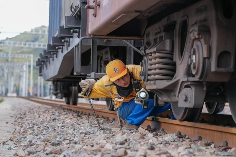 为保证货车快速顺利“通关”,昆明北车辆段持续优化磨憨作业场生产力布局,人员配置由作业场刚成立的12人增加为41人,同步强化作业人员业务技能提升,以更高技能水平投身现场检修工作。同时,完成风管收集小车、货车压轮器等3项攻关成果,总结形成“两必看、三必撬、四必换”闸瓦故障处置等4项列检工作法,技检作业平均用时从42.9分钟压缩至31.3分钟,货运车辆停车检修时长缩短27%。