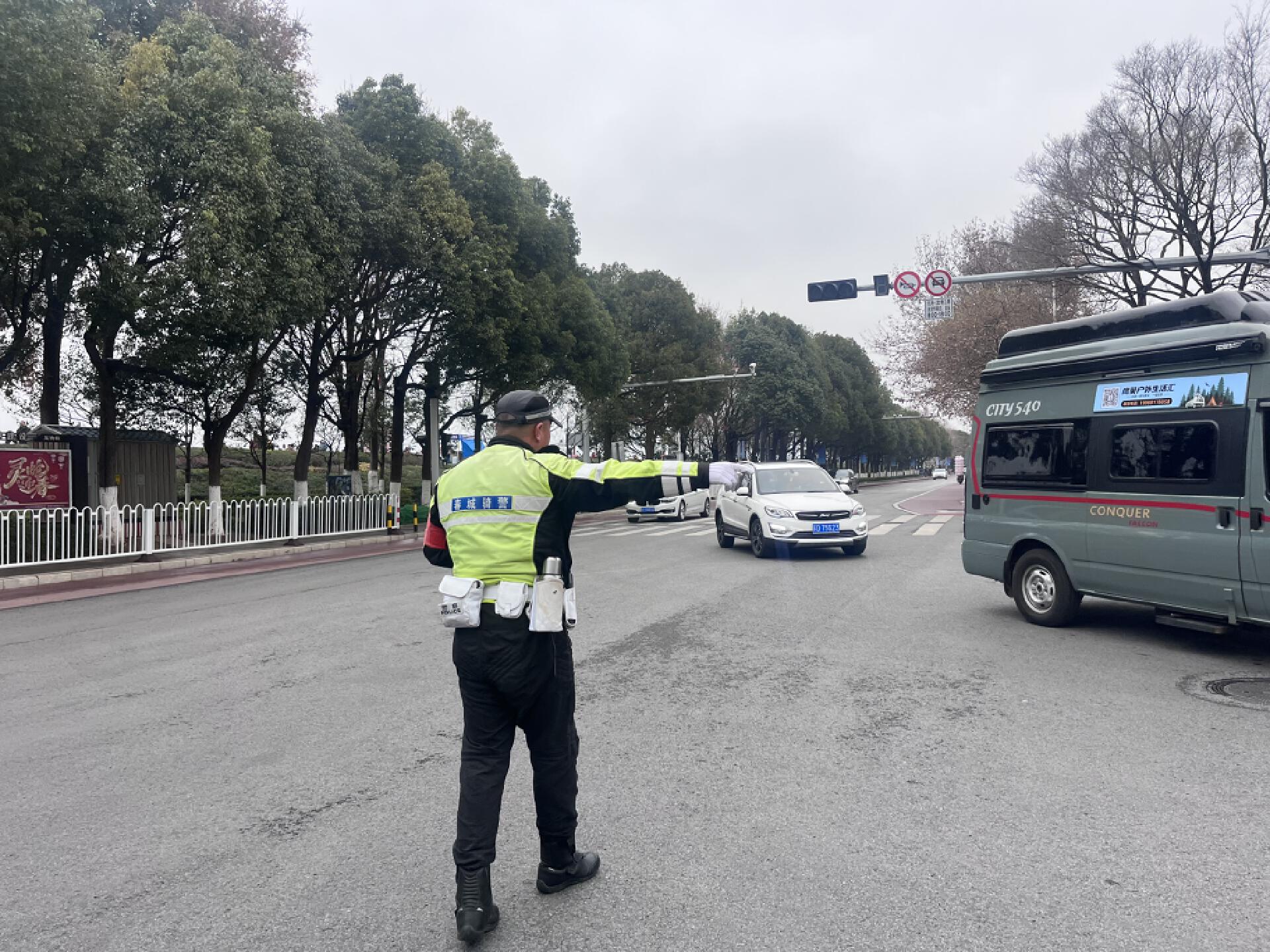 “快到饭点了,你先去吃饭。”休息片刻,何文博又朝路中走去,换下自己的队友,车流中能清晰地看到那个挺拔的身姿……