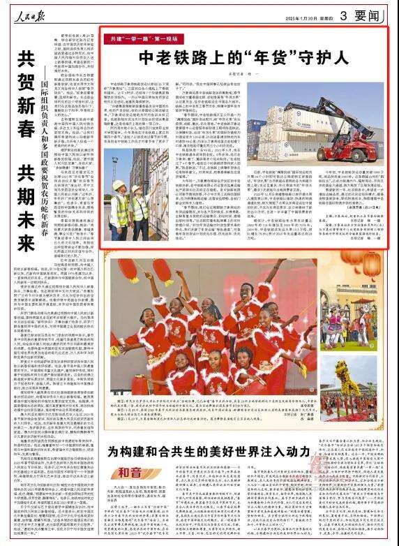 1月30日,《人民日报》要闻版刊文点赞中老铁路上的“年货”守护人。