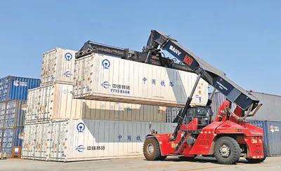 万象南站,起重机正在吊装冷链集装箱。杨一 摄