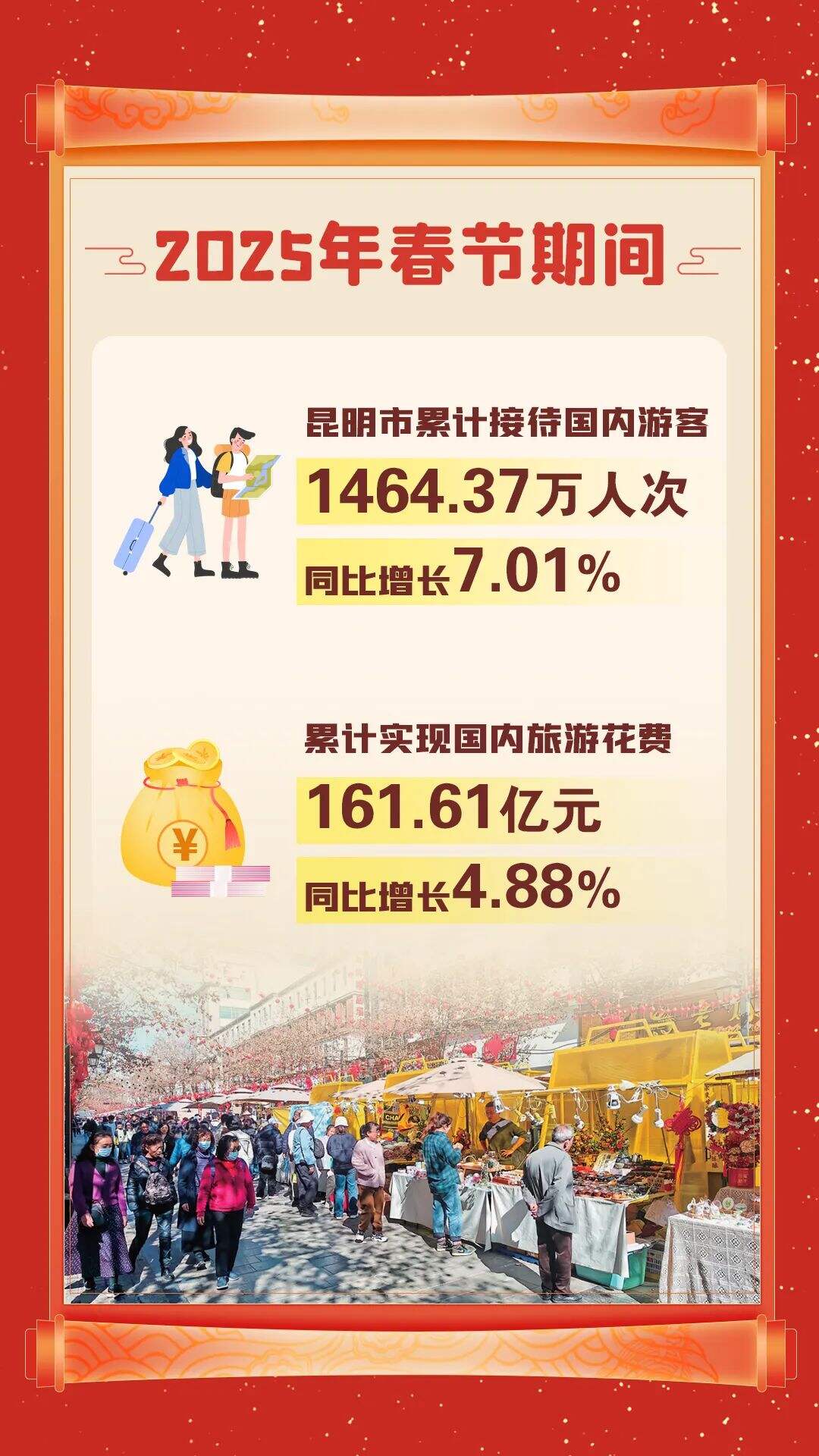 累计实现国内旅游花费161.61亿元