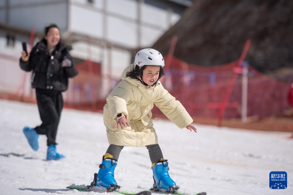 2月10日,游客在昆明市轿子雪山室外滑雪场滑雪。