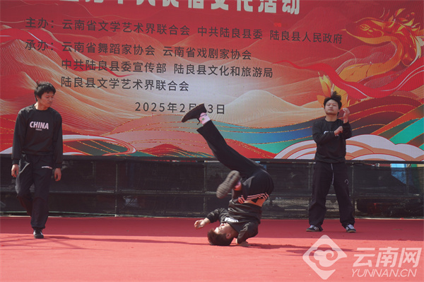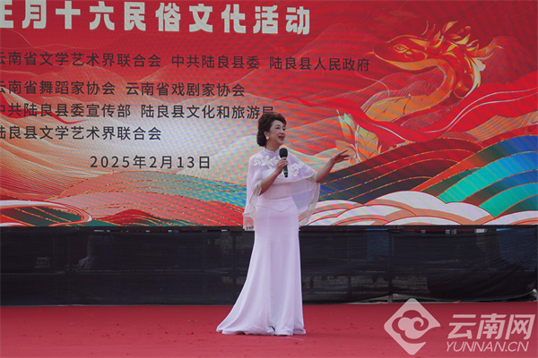 2月13日,由云南省文学艺术界联合会和中共陆良县委、陆良县人民政府主办,云南省舞蹈家协会、云南省戏剧家协会、中共陆良县委宣传部、陆良县文化和旅游局共同承办的“与祖国同心 与人民同行”云南省文联“文艺轻骑兵”基层行文艺演出暨陆良县2025年“我们的节日·元宵”暨“春到万家 福满爨乡”正月十六民俗文化活动在陆良县爨文化广场成功举办。