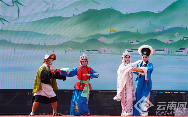 现场,梅花奖获得者冯咏梅、陈亚萍,戏剧表演艺术家高爱洁、赵文杰,省音协副主席、云南艺术学院音乐学院院长林林以及鲁林、尹伟、李贤等歌唱家、演奏家应邀参加本次演出活动。文艺演出在女子群舞《红灯笼》中拉开序幕,歌曲《春风十万里》《我是中国人》、歌伴舞《我们的中国梦》等演唱节目以动人歌声唱出了国家繁荣昌盛、群众幸福生活;舞蹈《滇峰街舞》活力四射;小滇剧白蛇传选段《游湖》、戏歌《悠悠梨园情》、花灯小戏《探干妹》、滇剧《赵大哥盟罢宏誓愿》等节目将花灯、滇剧的艺术魅力展现得淋漓尽致。演员们以精湛的表演、动人的唱腔和细腻的情感表达,赢得了现场观众的阵阵掌声。(记者李熙临 通讯员王永德)