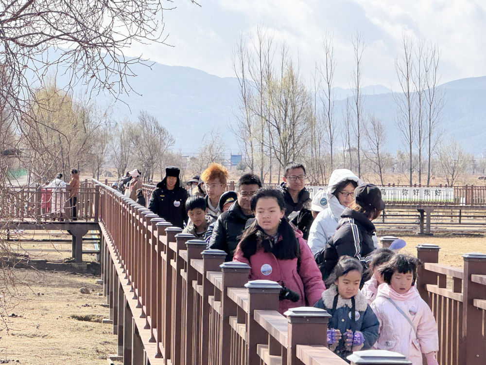 春日的拉市海湿地天光澄澈,碧波潋滟。2月15日,一场以“保护湿地、共筑未来”为主题的亲子观鸟活动在这里举办。150名家长和孩子走进这片高原“水鸟天堂”,在专业导师的引导下,通过知识课堂、沉浸式观鸟实践与荣誉表彰,感受生物多样性魅力。