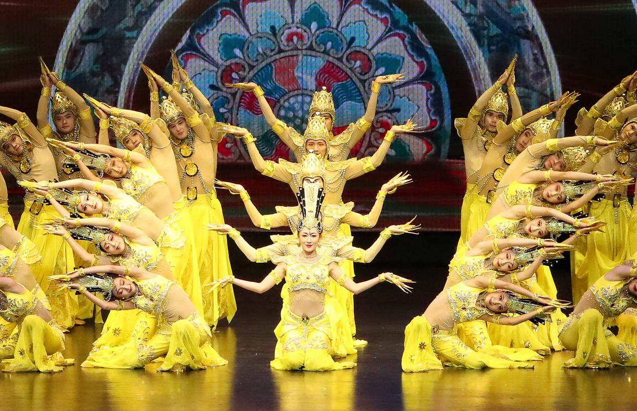 2024年9月20日,演员在第七届丝绸之路(敦煌)国际文化博览会举行期间表演大型情景音画剧《千手千眼》。新华社记者 郎兵兵 摄