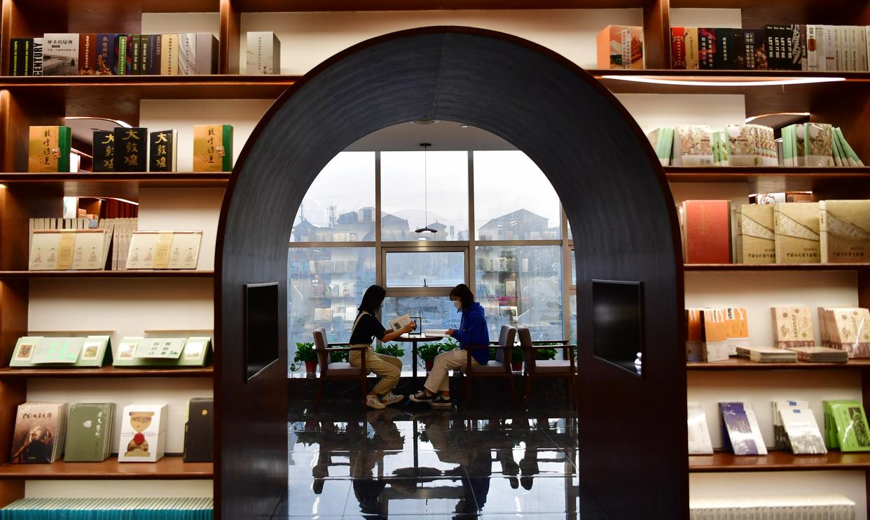 2022年4月21日,读者在敦煌书局阅读区看书。新华社记者 陈斌 摄