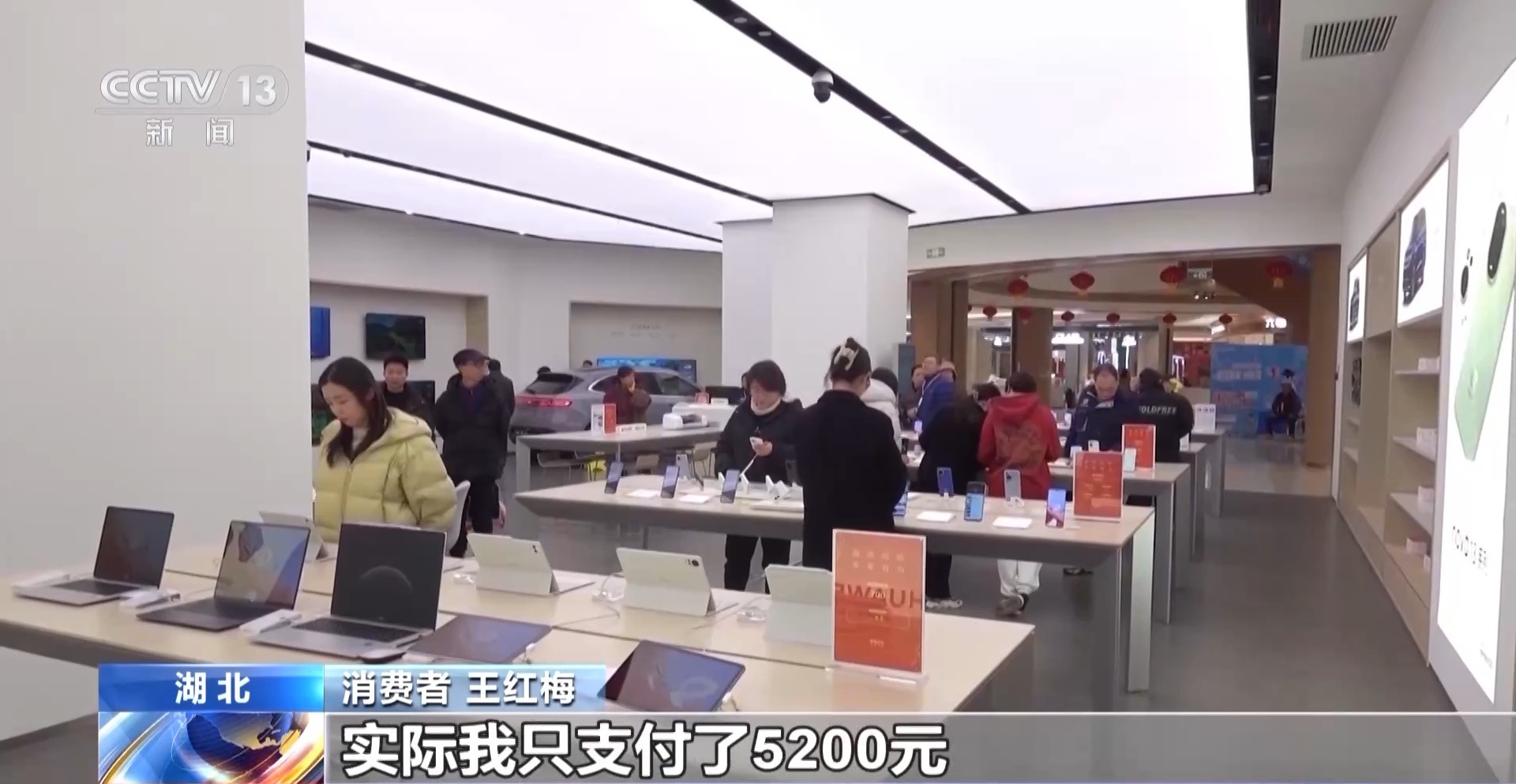 在湖北襄阳的一家数码产品品牌体验店,消费者正在选购心仪的电子产品。记者从襄阳市商务局了解到,今年1月20日购新补贴实施以来,截至2月16日,襄阳市相关数码消费品以旧换新累计总销量45385台,总销售额达1.35亿元。