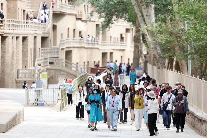 2024年6月7日,游客在莫高窟参观游览。新华社记者 郎兵兵 摄