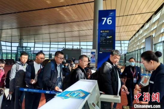 2月18日,昆明至美娜多首航航班旅客正在登机。王青林 摄