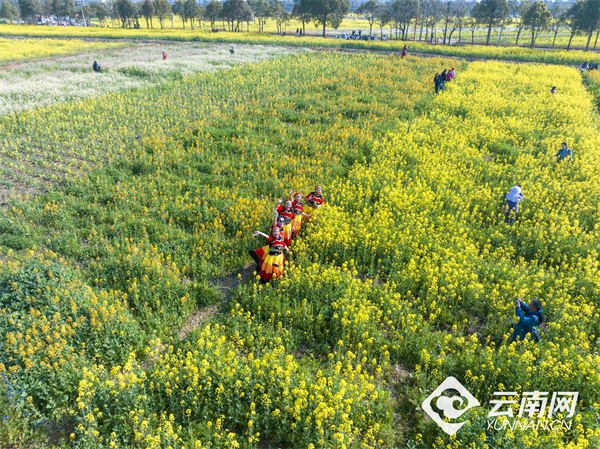 随着农文旅融合发展和社交媒体的持续传播,福保半岛油菜花田迅速成为“网红”打卡地,周末单日接待游客量超5000人次。当地居民借势推出农特产品展销、特色小吃等,部分居民还开放自家小院提供农家餐饮,进一步拉动了周边消费。福保半岛开发方相关负责人介绍,福保半岛共种植了1200亩油菜花,主要为甘蓝型油菜花,油菜花种植不仅为旅游打卡增添亮色,其规模化种植还兼具经济与生态效益,花期结束后将用于绿肥还田,助力土壤改良。(云南网记者 张梅焕 通讯员 郭武辉 王正鹏)