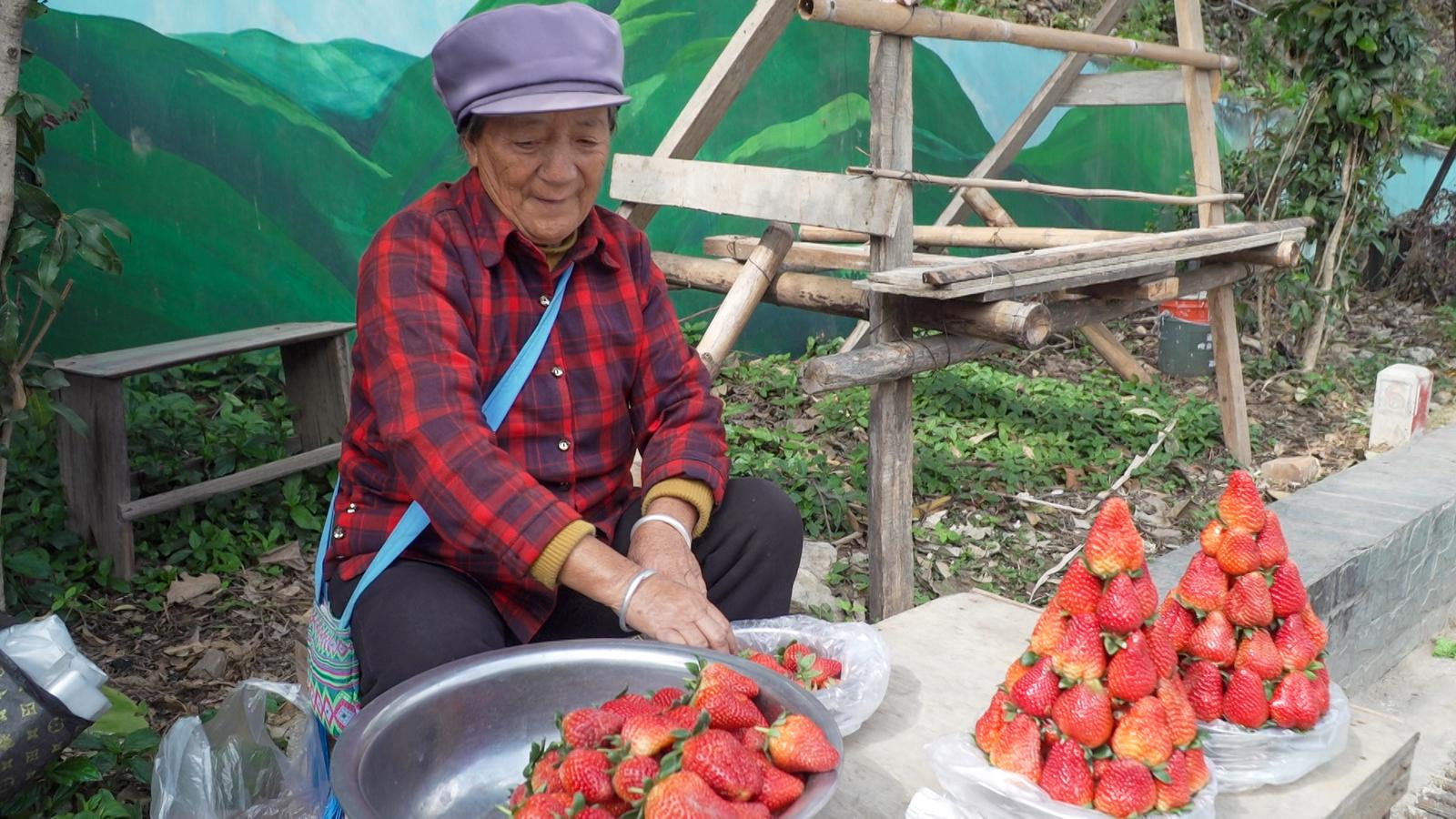 今年73岁的熊妹妞妈家也种了两亩新品种草莓,她说草莓种植属于轻松活计,除了栽种时需要儿子、儿媳妇帮忙外,田间施肥、灌溉和出售她一个人就能够轻松完成,今年她已收入16000多元。