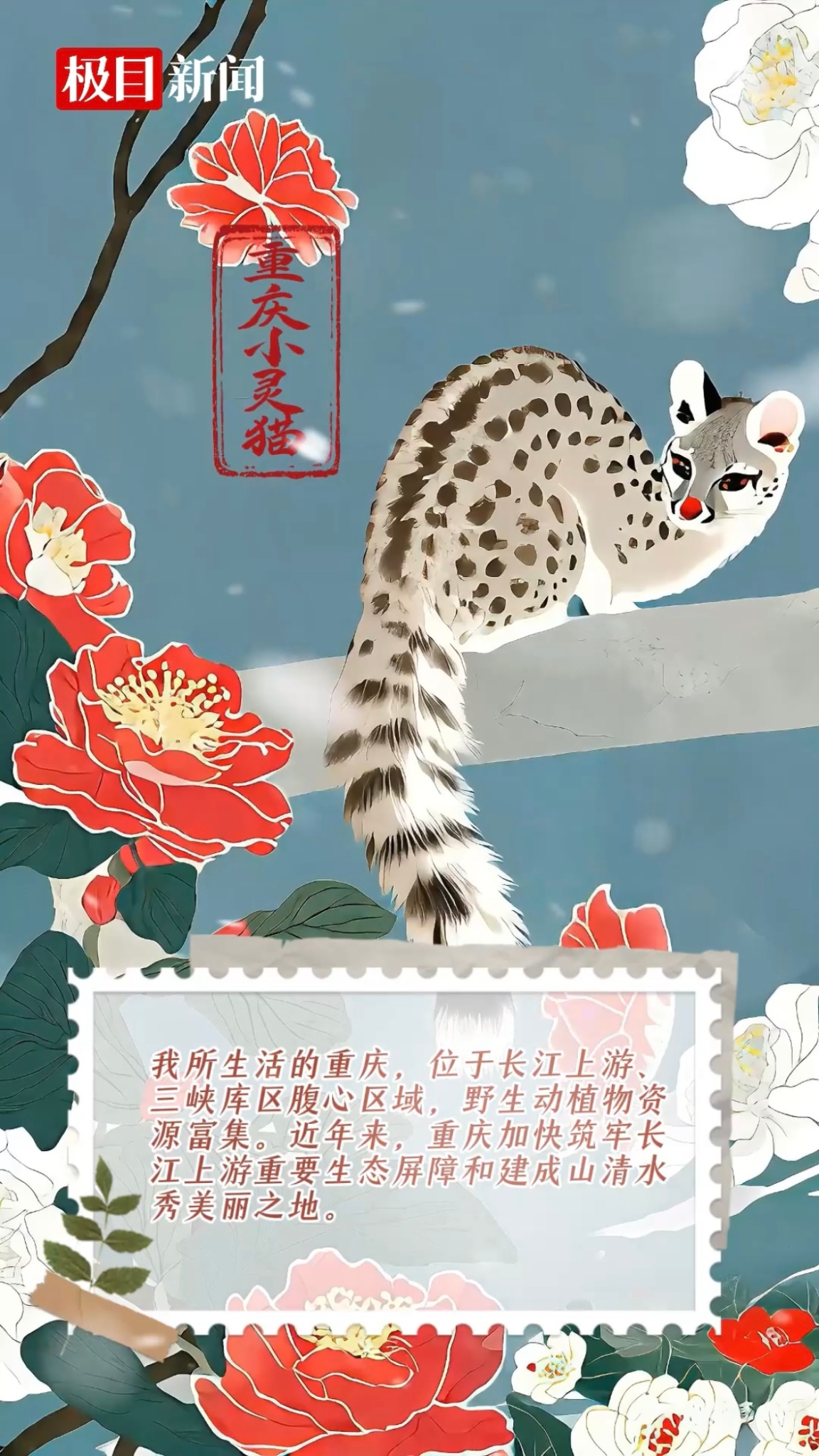 小灵猫所生活的重庆,位于长江上游、三峡库区腹心区域,野生动植物资源富集。近年来,重庆加快筑牢长江上游重要生态屏障和建成山清水秀美丽之地。深化建设自然保护地管理体系,统筹山水林田湖草系统治理,大力实施生态系统保护修复工程,珍稀濒危野生动植物及其栖息地保护取得积极成效。截至目前,包括我们小灵猫在内,重庆市域分布国家重点保护陆生野生动物112种。