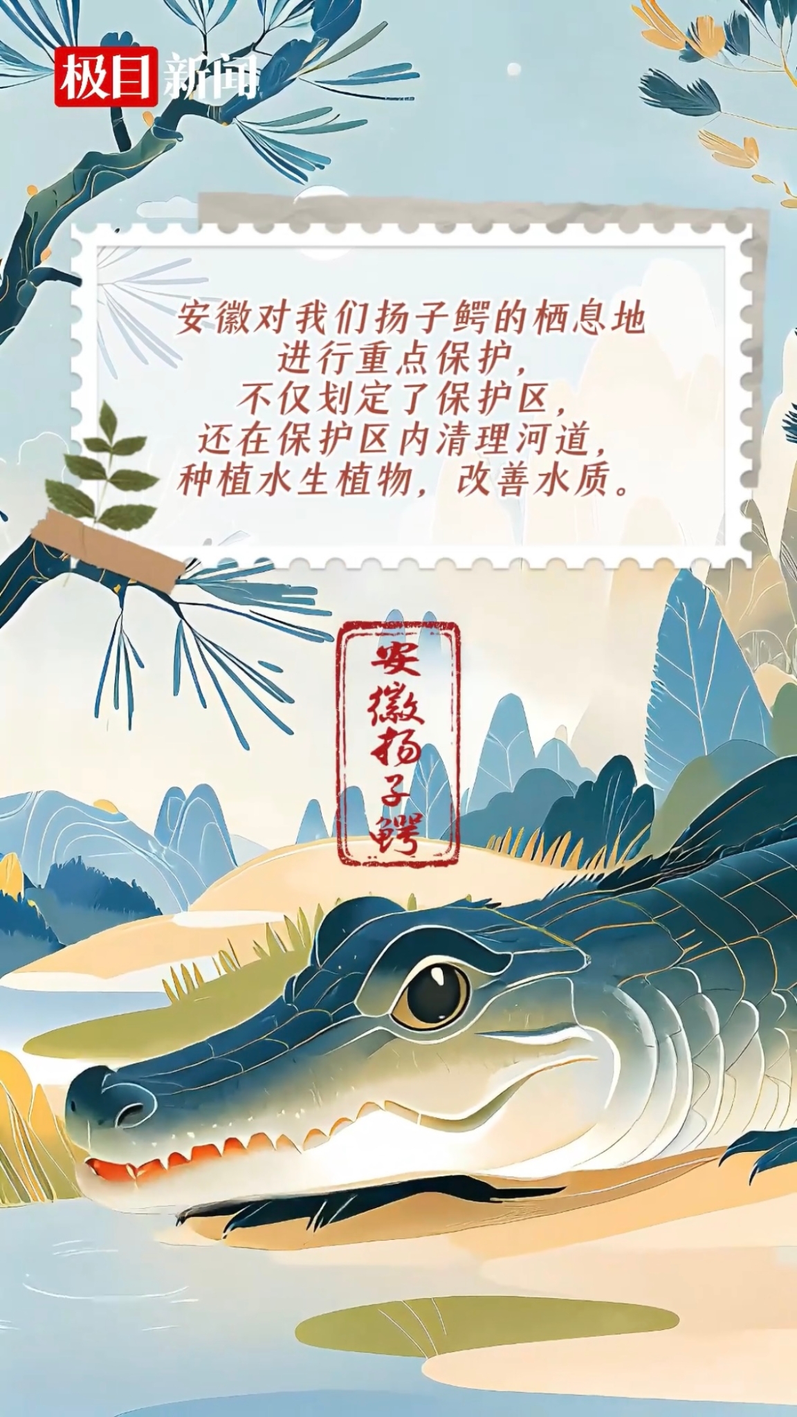 安徽的长江流域,生活着古老的扬子鳄。近年来,安徽对扬子鳄的栖息地进行重点保护,不仅划定了保护区,还在保护区内清理河道,种植水生植物,改善水质。同时,加强了对长江水污染的治理,严格监管工业企业的污水排放。如今,随着栖息地环境越来越好,扬子鳄这一延续2000万年的古老血脉正在续写新篇。