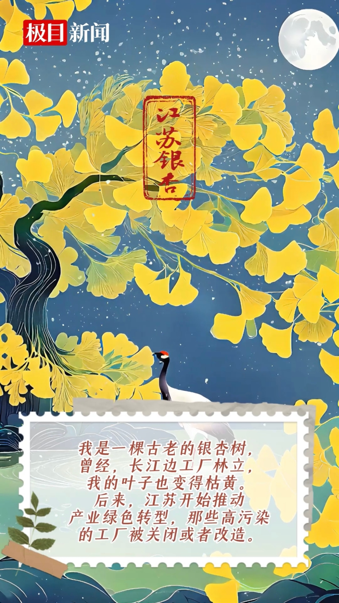 古老的银杏树,扎根在江苏的长江边。近年来,江苏开推动产业绿色转型,高污染的工厂被关闭或者改造,建设了总长超1000公里的生态廊道,廊道内种植了大量的本土植物,为众多生物提供了栖息和迁徙通道。在水质治理上,推动产业绿色转型,淘汰了一大批高污染、高能耗企业,对长江江苏段的水质进行严格监测,确保水质稳定达标。这些举措让长江两岸生态环境越来越好,银杏树也在这片土地上茁壮成长,见证着长江的变化。