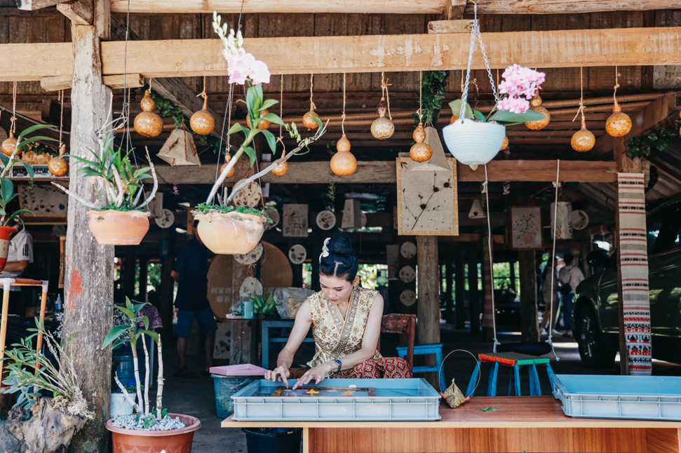 曼远村傣族造纸体验庭院。胡妤雅 摄