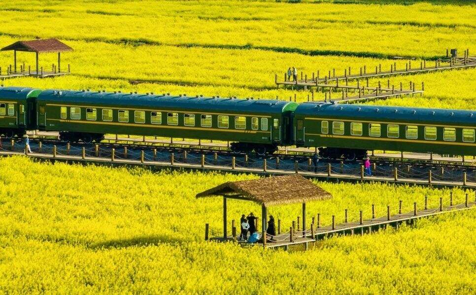 无论哪个季节来到沙堤旅居,当地的美景一定让人久久不能忘怀。春天,金黄色的油菜花海是沙堤村最为壮观的景象,绿皮小火车从油菜花间穿过,微风拂来,花浪翻滚,引来蜜蜂蝴蝶翩翩起舞,构成一幅生机勃勃的春日画卷。夏日来临,沙堤村池塘里荷花盛开,粉嫩的花瓣轻轻摇曳,在绿叶衬托之下更显娇艳欲滴,荷塘之上处处生机盎然。